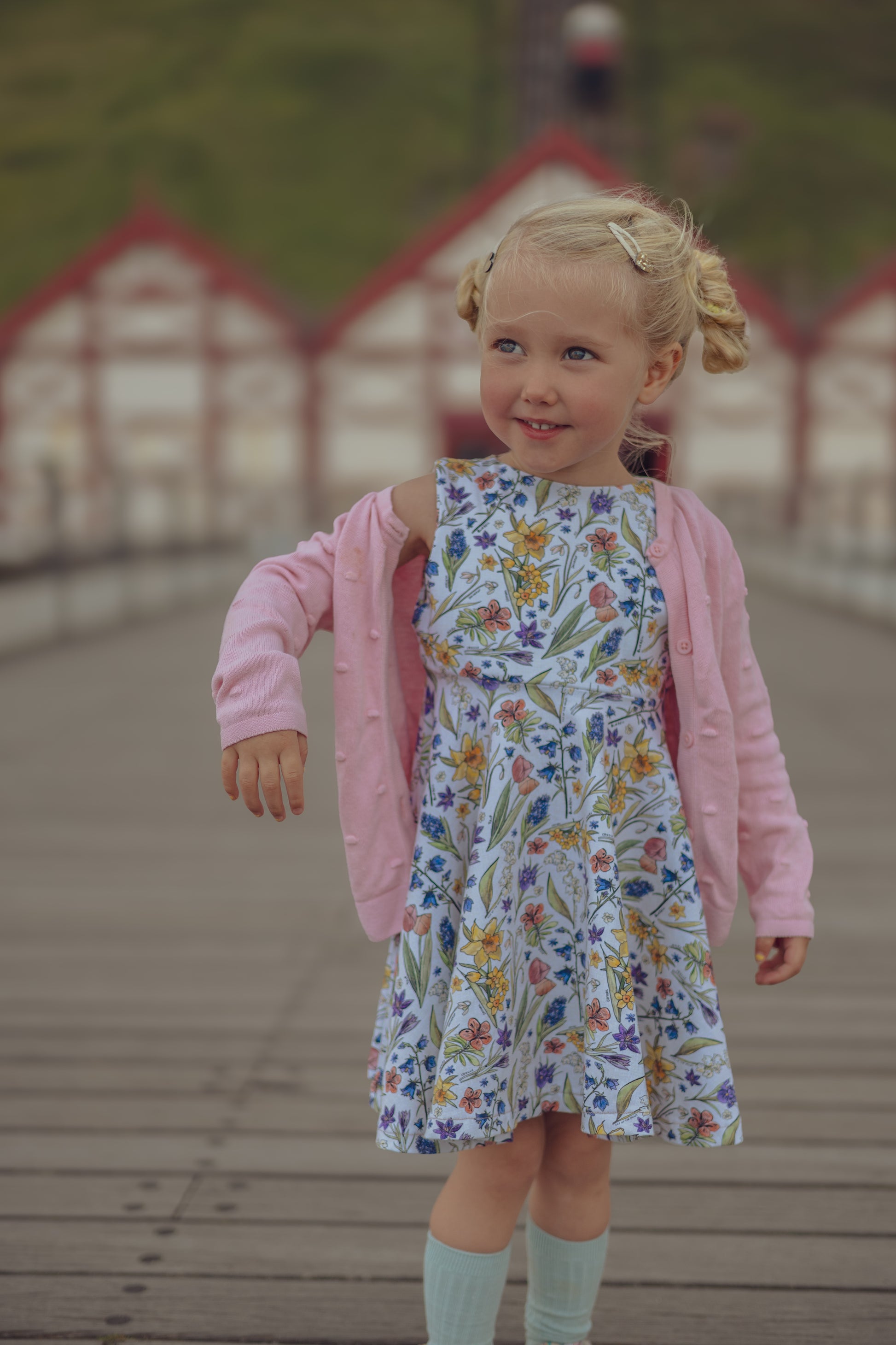 Your little will absolutely love this iconic circle skirted dress with a fitted, lined bodice. The movement is beautiful the twirl factor something to be admired and the fabric of the highest, softest quality.